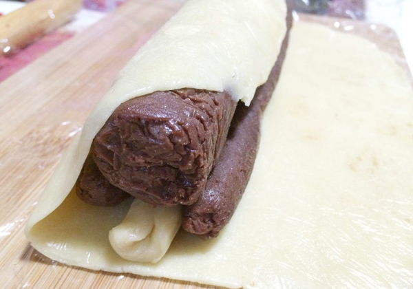 8. 各搓成條狀後放入冰箱冰稍微定型不黏手後再取出組合