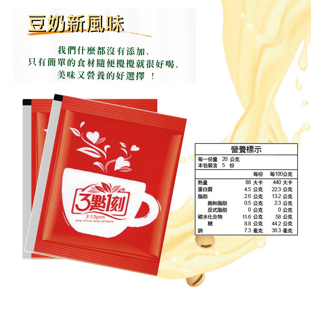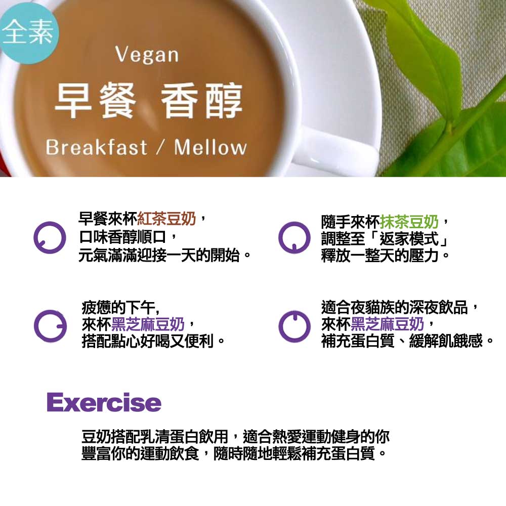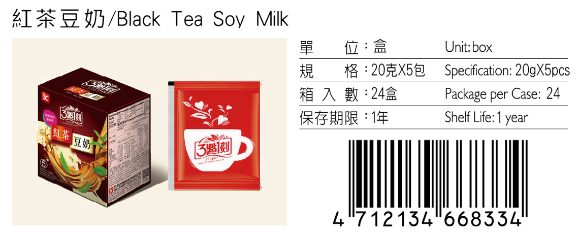 豆漿粉、細糖、研磨紅茶粉 (含即溶紅茶粉)
