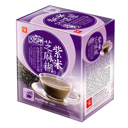 - 內容物:細糖、黑芝麻粉、麥芽糊精、奶精[葡萄糖漿、氫化棕櫚核仁油、乳清粉、乾酪素鈉、穩定劑(磷酸鉀、磷酸氫二鉀、多磷酸鈉)、乳化劑(脂肪酸甘油酯、乳酸硬脂酸鈉)、二氧化矽、β-胡蘿蔔素]、黑糯米粉、膠質(麥芽糊精、羧甲基纖維素鈉、關華豆膠)、玉米粉、乳糖、黑豆粉、洋車前子殼、食用香料、黑木耳[黑木耳、D-山梨醇液(甜味劑)]、精鹽