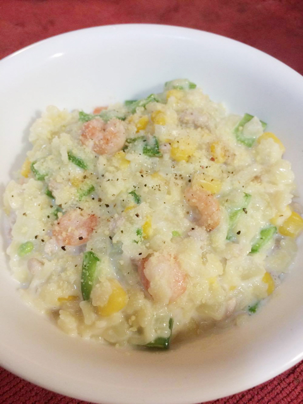 6. Sprinkle some cheese powder and freshly ground black pepper after the pan is placed on the plate.