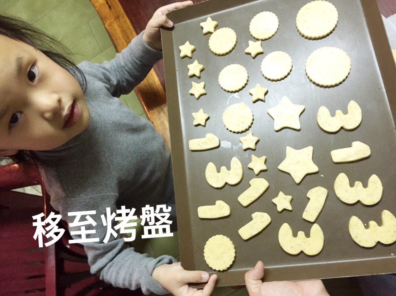 8. Use a model stamper, carefully move it to the baking tray, and bake for 20 minutes.