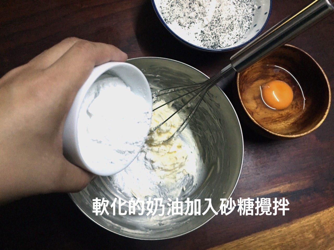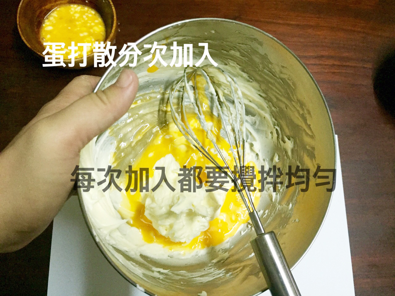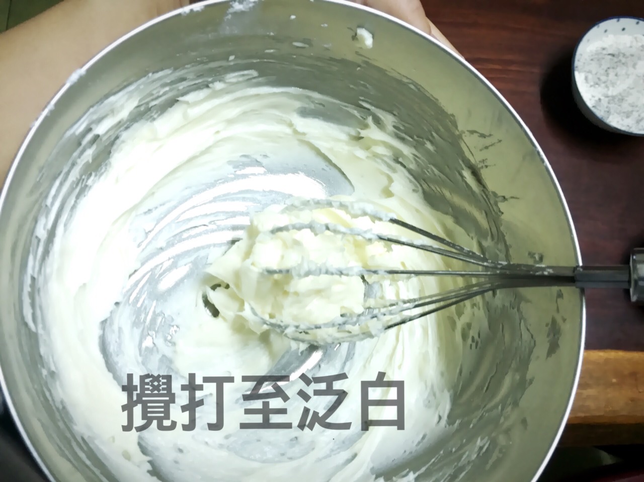 2. Soften cream B at room temperature, add powdered sugar C, and beat with a whisk until pale.