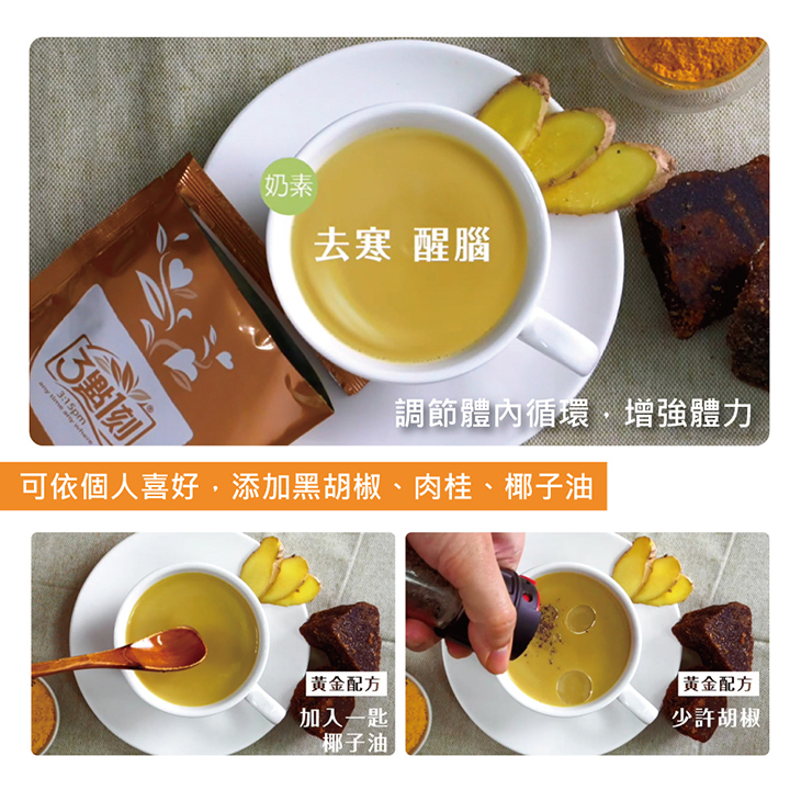 Turmeric powder is paired with ginger powder and milk powder to make a mellow and delicious health-preserving brewed beverage suitable for adults and children. Drinking it at any time is healthy.
