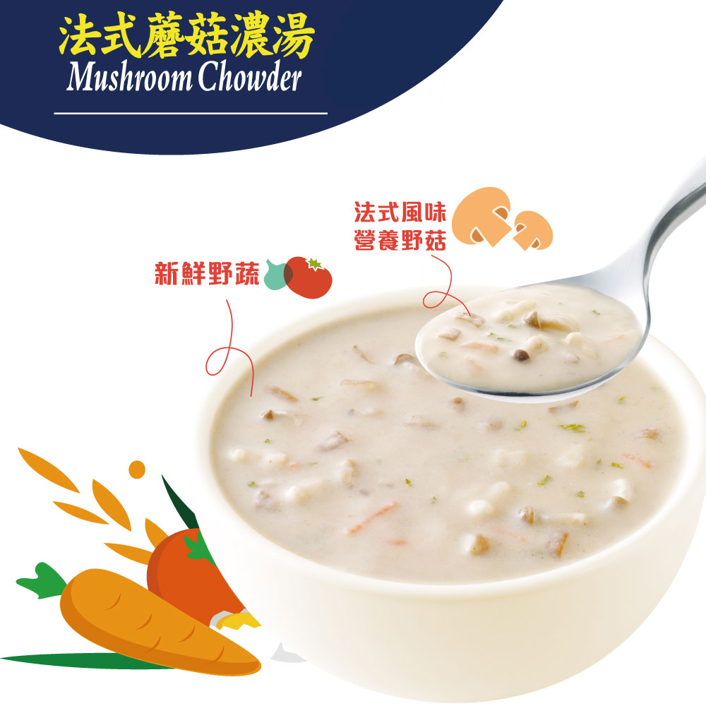 又香又濃的獨享杯濃湯,不論您在戶外或辦公室,立即滿足您飢腸轆轆的肚肚!