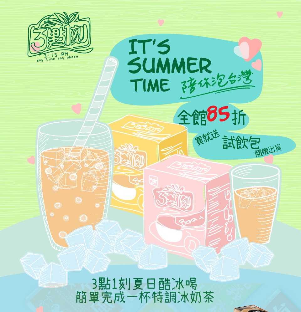 3點1刻酷夏瘋殺全館結帳85折優惠實施中。