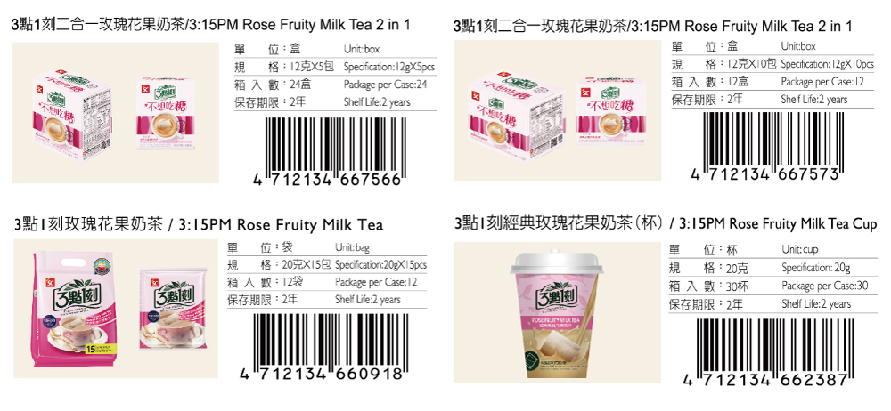 細糖、奶精、紅茶、玫瑰花果粉、烏龍茶