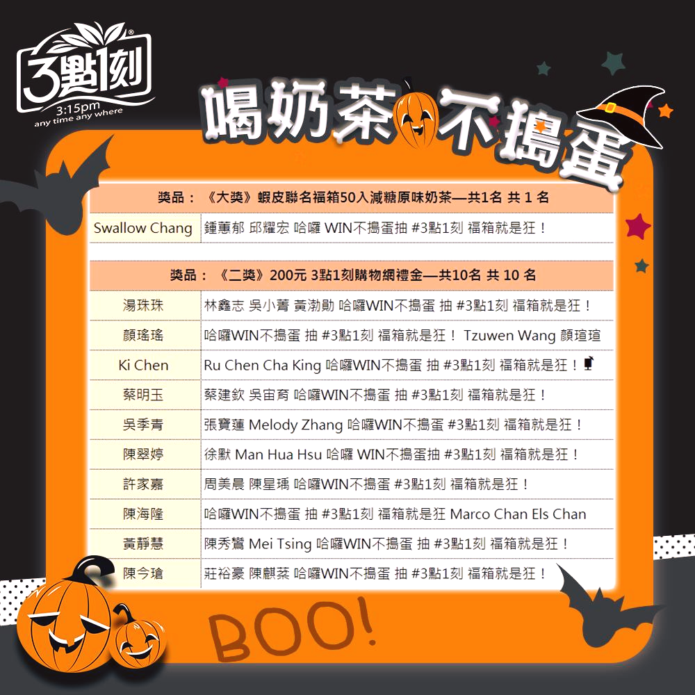 得獎者請私訊 #奶茶哥「我中獎了!!!!!」