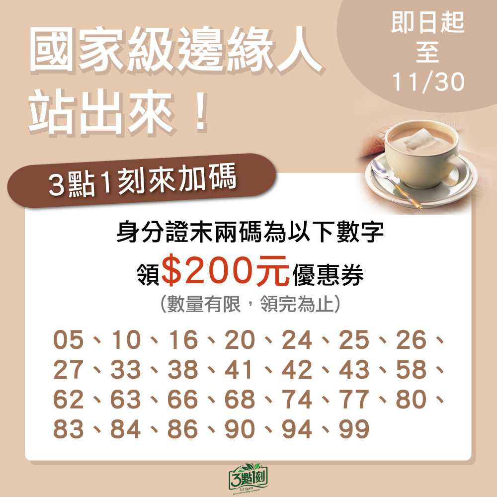3點1刻加碼100張現金優惠券,不用抽籤大放送~