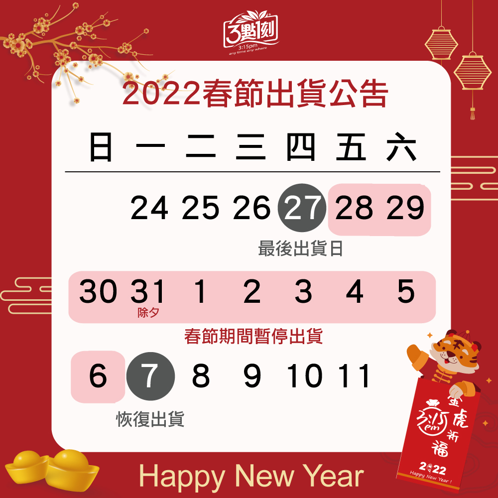 年節將至,3點1刻先祝大家虎年大吉,新年快樂~