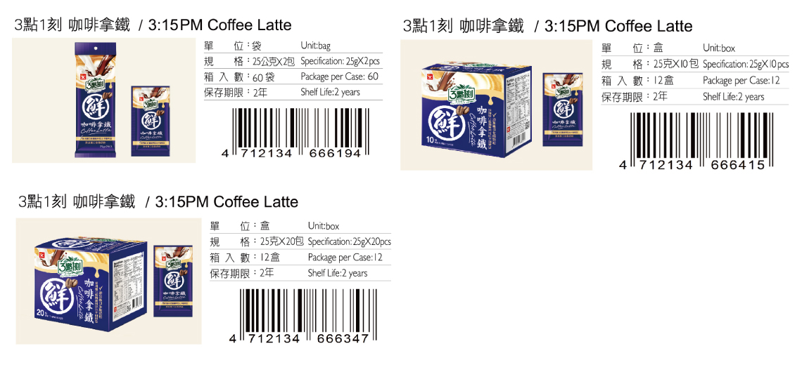• 內容物:全脂奶粉、細糖、脫脂奶粉、研磨咖啡粉(含即溶咖啡粉)、碳酸氫鈉(小蘇打)